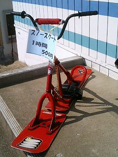 スノースクータなるものにも乗りました。これはハンドルを使って方向転換を図るのではなく重心移動で曲がる物だと、「頭でわかっていたので」、初めてでしたがうまくいきました。私はスノーボードの経験はありませんが、おそらくすぐできるようになると思います。所詮は板で摩擦が少ない坂を滑るという運動ですので、骨を掴めば簡単なものです。